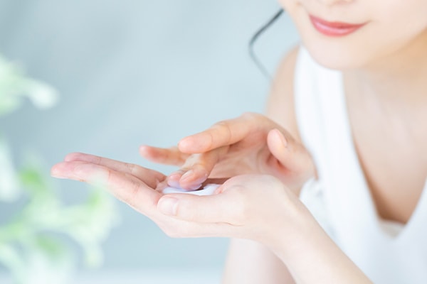 3~4プッシュ分を手にとり、まず、気になる目じりやほうれい線に美容液をたっぷりおきます。