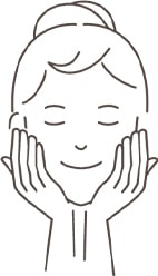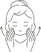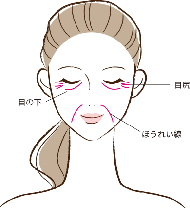目もとと口もとになじませた後、ほほ、額に美容液を広げなじませます。