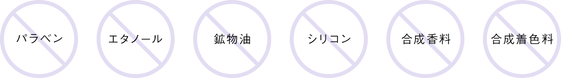 パラベン・エタノール・鉱物油・シリコン・合成香料・合成着色料は不使用。可能な限り 肌に負担をかけない無添加処方です。